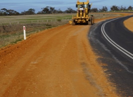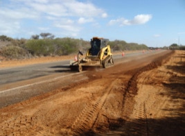 Images above of road maintenance shoulder projects in Australia using PolyCom Stabilising Aid.